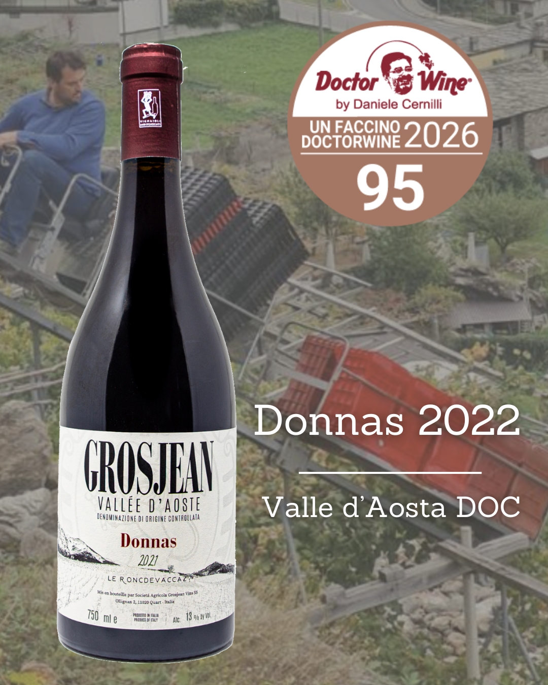 La Guida Essenziale ai Vini d’Italia 2026 di DoctorWine ha premiato il nostro Valle d’Aosta Donnas 2022 con l’ambito Faccino DoctorWine e un punteggio di 95/100. Un risultato di grande prestigio che celebreremo durante la cerimonia ufficiale a Milano.